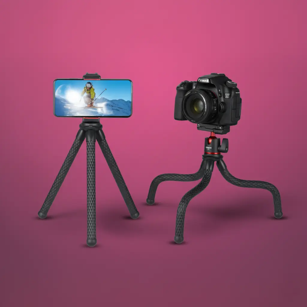 Yes, the Ulanzi MT11 Octopus Tripod includes a foldable phone clip that adjusts between 60mm and 85mm, covering the vast majority of smartphones sold in Bangladesh including Samsung, Xiaomi, Realme, iPhone, Vivo, and OPPO models. The standard quarter-inch mount also ensures full compatibility with DSLR cameras, mirrorless systems, action cameras, and video lighting accessories without requiring any additional adapter.