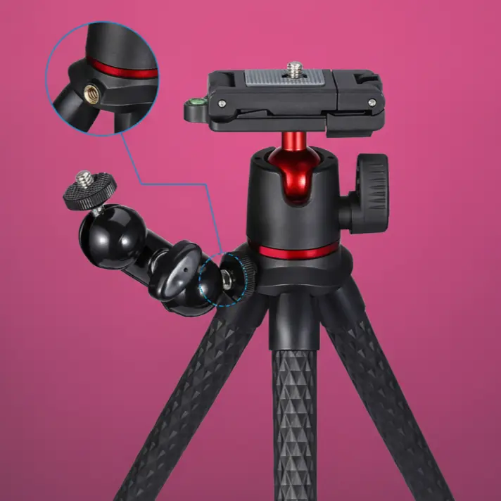 • Flexible Wrappable TPR Legs — The rubberized octopus legs can be bent, twisted, and wrapped around tree branches, railings, bicycle handlebars, or uneven rocky terrain, allowing you to mount your camera in locations where a conventional rigid tripod would be completely impossible to use.